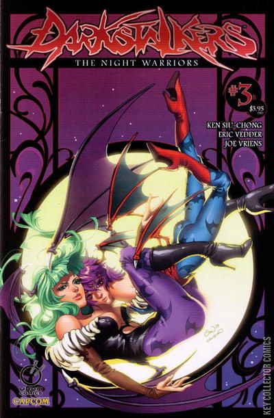 It's the frightening conclusion to the "Night Warriors" saga, as Demitri, Morrigan, Donovan, and Pyron all collide in a final contest of power! The fates of both the planet Earth and the demon dimension of Makai hang in the balance... but will either realm survive the fury that the Darkstalkers unleash!? NOTE: All 3 Alvin Lee covers for Darkstalkers: The Night Warriors #1, 2 & 3 connect to form one massive image!