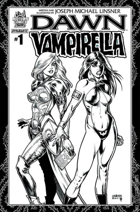 Our story begins when the silver tongued demon Masodik tricks and kidnaps both Dawn and Vampirella, written and drawn by Dawn creator Joseph Michael Linsner! He tells them that they are the 2 most beautiful women in all of the worlds, these two 'Bad Girls'. Their demon host demands a cat fight to see who is best suited to his purposes, but the ladies suggest something more feminine -- a storytelling contest. Together they take us to the bloody shores of Draculon, to post-apocalyptic New York and to worlds beyond imagination. Only Ravana knows what rewards and punishment await the winner and the loser in this duel of horror hostesses.