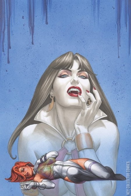 After being forced to entertain the demon Masodik with wild stories under the threat of death, Vampirella has had more than she can stand. She begins to suspect that her fellow captive Dawn might know more than she is saying. Is Dawn hiding some ace up her sleeve, or is she in league with Masodik? Violence erupts between the two. The demon is thrilled by this, thinking he is getting a front row seat to the fight of the century. Blood flies and roses shatter as Dawn and Vampirella come face to face and confront their differences.