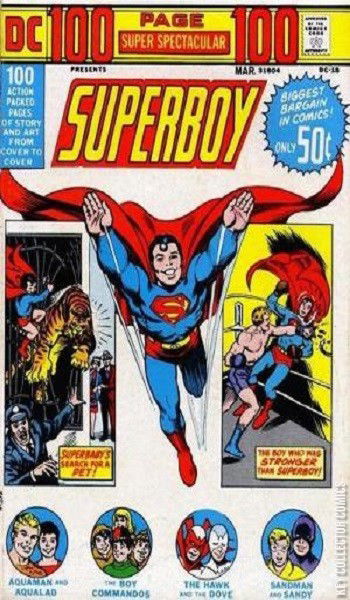 Reprints of four stories featuring Superboy, plus tales of the golden-age Sandman, Aquaman, the Boy Commandos, the Hawk and the Dove and 'Dial H for Hero'.