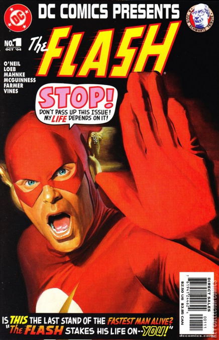 The cover of THE FLASH (original series) #163 inspires two remarkable stories, in which the Scarlet Speedster begs readers to pick up the issue because his "life depends on it!" Taking up the challenge are the teams of Dennis O'Neil & Doug Mahnke and the SUPERMAN/BATMAN team of Loeb, McGuinness & Vines!