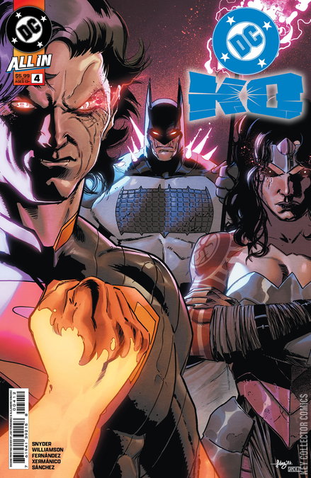THE FINAL FOUR ARE PUT TO THE ABSOLUTE TEST! Three mysterious new Omega-charged fighters have entered the tournament...and this trinity of the Absolute will change the face of the DCU forever! Its all down to how far the final four are willing to go to win in the penultimate chapter of DC K.O.! Plus: Boosters true allegiance revealed, Darkseids return foretold, and a bonkers last page that will bring the battle to the next level!