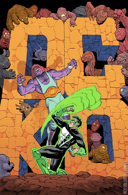KYLE RAYNER BRINGS THE COSMIC REINFORCEMENTS! As the K.O. tournament rages on Earth, the cosmos holds its collective breath as the heroes of our planet fight for the survival of the very universe. But the cavalry is on the horizon! Kyle Rayner, in a bid to provide cover for his fellow Green Lanterns, has found himself pummeled across the galaxy and into the ring of...a wrestling federation?! Oh no...oh dear heavens no...is Omega Bam Man about to enter the DC K.O. fray?! Oh mah gawd! An entire cavalcade of brawlers is right behind him! Are there tables? Somebody get the tables!