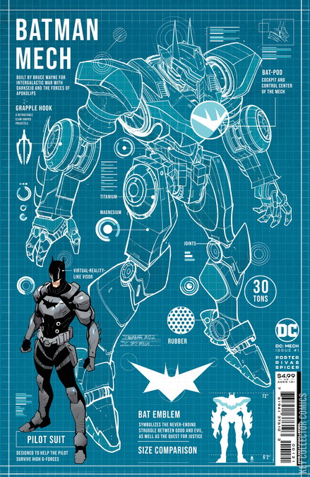 At the end of World War II, Earth was invaded by giant mechanized Parademons from a planet called APOKOLIPS. The planet’s protectors, the Justice Society of America, were devastated and with them, the age of Super Heroes came to an end, and the era of the Mech began. In the ensuing years, the world has stockpiled colossal battle suits piloted by elite warriors, waiting for the day Apokolips returns. But when Kal-El, the last son of a dying world, crash lands in Metropolis with his own warsuit, he’ll face down two of earth’s greatest Mech fighters, The Flash and Batman. The dawn of a brave new mechanized DCU is here from the rising star creative team of Kenny Porter ( Flash: The Fastest Man Alive , Fearless) and Baldemar Rivas ( Robins , Batman: Urban Legends ).