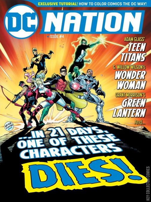 In addition to the morbid promise that an iconic character will likely bite the dust soon, DC Nation #4 will also feature the following: A feature on Heroes in Crisis with insights on post-traumatic stress syndrome from a prominent psychologist. An interview with Wonder Woman‘s new writer G. Willow Wilson. Grant Morrison and Liam Sharp discussing Green Lantern. Dan DiDio reveals the latest details on Sideways. A look at new developments in Justice League: Odyssey. A profile of Teen Titans‘ breakout star Crush. Comparing and contrasting Action Comics and Superman. A Direct Currents section spotlighting comics set to arrive in comics shops in October.