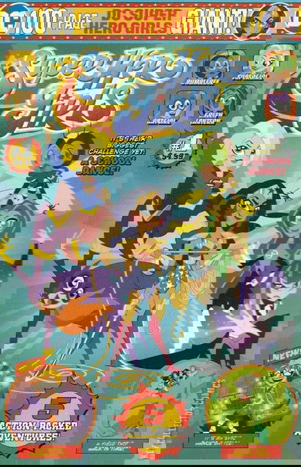 This issue includes two new stories: "Panic at the Disco," a 16-page story written by Amanda Deibert with art by Erich Owen It's time for the greatest teenage tradition of them all: the school formal! But when Livewire attacks and sets everyone's toes a-tapping, the girls will have to put their dancing shoes to make it through the night! "Harvest Festival," an eight-page story written by Amy Wolfram with art by Agnes Garbowska The girls are excited about this year's Fall Festival, but Harley Quinn has other plans! Will Bumblebee be able to stop her and keep the pumpkins from flying? Plus reprint chapters from DC Super Hero Girls: Hits and Myths, DC Super Hero Girls: Summer Olympus, and DC Super Hero Girls: Past Times at Super Hero High