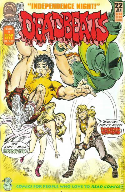 Home / Claypool Comics / Deadbeats / Deadbeats #22 Claypool Comics Released January 1997 Deadbeats #22 Add to Collection Want It Synopsis No synopsis available. Issue 22 of 82 Add to Collection Buy it on eBay Buy on eBay Low $1 Mid $2 High $3 Synopsis No synopsis available. Details Series Deadbeats Cover Date January 1997 Pages 36 UPC N/A Cover Price $2.50 Final Order Cutoff N/A Creators No creators listed. Price Guide Log in or subscribe to access detailed graded price information and market insights. Log In Subscribe