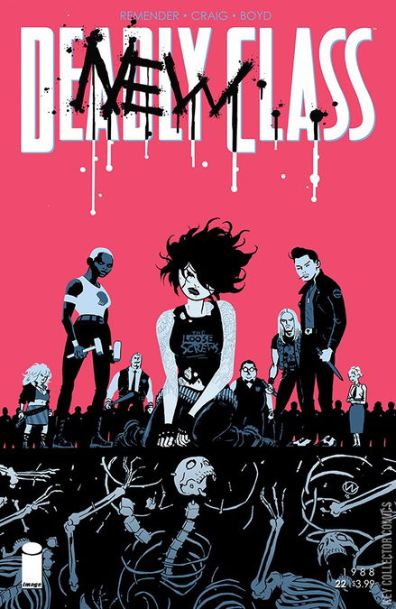 Its' morning in America, and a new era of Deadly Class begins here! The survivors of last arc's brutal finale barely have time to consider what they've done before a new class of kids arrives at the school, eager to pick up the bloody mantle. And nothing goes better with fresh blood than a Freshman Mixer!