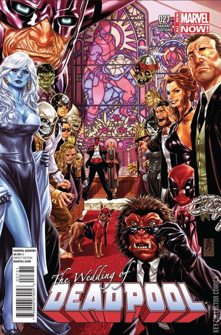 THE WEDDING OF DEADPOOL / OPERATION BALLERINA DROP / #$%@ FACED IN VEGAS / WITH THIS HAND, I THEE WED / CONTINUITY SPONTINUITY / THE NIAGARA BRIDE / FANGED / QUICKIE / SO DEADPOOL WALKS INTO A BAR... / ENJOY FOR A WINKIE / THERE WILL BE NO HONEYMOON / SAVAGE LAND: THE OTHER NIAGARA FALLS / THE SPACE RACIST That's right-the day you never dreamed would come has finally arrived... Deadpool is getting MARRIED! First up in this ENORMOUSLY OVERSIZED ISSUE is our the main feature-the biggest wedding since that one guy married that other guy as Deadpool and his mysterious bride tie the knot in a tale by Gerry Duggan , Brian Posehn , & Mike Hawthorne ! THEN, we've rounded up EVERY writer to ever pen Wade's series to celebrate this magical occasion! No self-respecting Poolophile can miss this one! It's the most important issue 27 in the history of comics!