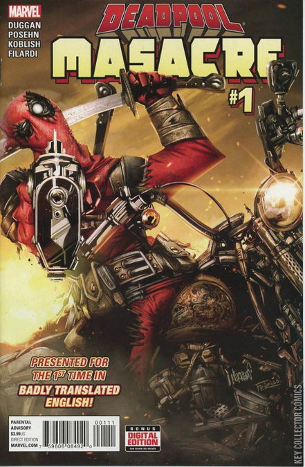 Months ago, we were proud to bring you DEADPOOL TRES PUNTO UNO - a tale told all in Spanish, revealing MASACRE, the Deadpool of Mexico! Due to popular demand (because apparently you were too lazy to translate it for yourself) Marvel has taken to an unspecified Internet translation site and is re-presenting the comic in POORLY TRANSLATED ENGLISH! Just in time for the "Fifth of May!"