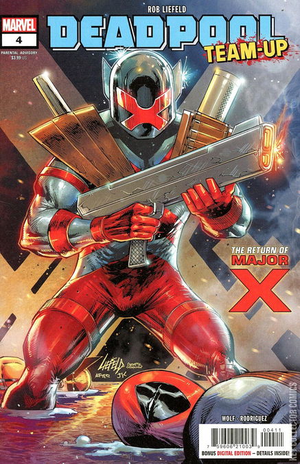MAJOR X RETURNS - AS A MAJOR PAIN FOR DEADPOOL?! It had to happen - the team-up of DEADPOOL and MAJOR X! But as these badasses take care of business, just which side is Major X on? Rob Liefeld's penultimate DEADPOOL issue is a can't-miss tour de force that no collection can afford to be without! RATED PARENTAL ADVISORY. Rated T+
