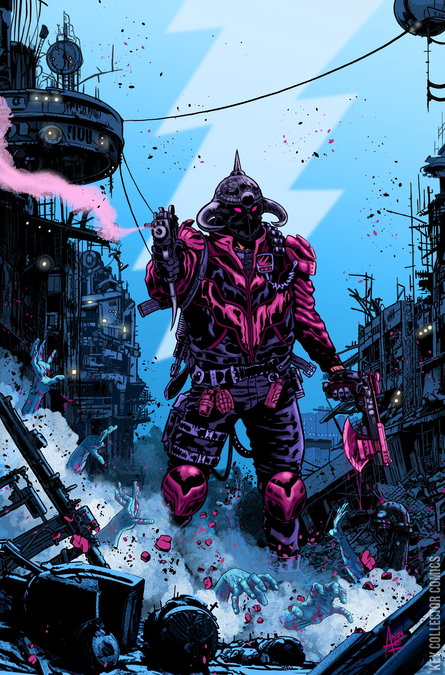 The legend of Frank Frazetta's Death Dealer continues� in 2099! Sword and sorcery meet cybernetics and supercomputers!! Join Andy Belanger (Black Cross, Megadeth) and Tatto Caballero (The Incal, Megadeth) as they explore the next chapter in the saga of the cursed horned helmet, bestowed upon a new warrior in a dark, unforgiving future.