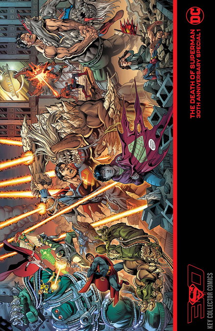 THE LIFE OF SUPERMAN / STANDING GUARD / TIME / ABOVE AND BEYOND 30 years ago, the unthinkable happened. The Man of Steel died. After sacrificing himself to stop the unstoppable global threat, Doomsday, Metropolis and the rest of the DC Universe mourned the loss of their greatest hero. To mark this monumental moment in comics, DC has reunited the complete creative team behind the original event for four brand-new stories. Led by Dan Jurgens and Brett Breeding , the special kicks off with a new Superman story and villain…DOOMBREAKER! Followed by a series of short stories revisiting some of Superman’s greatest allies and exclusive pinups done by some of comics’ greatest artistic talent including LEE WEEKS , GABRIEL RODRIGUEZ , BILL SIENKIEWICZ , and WALTER SIMONSON .