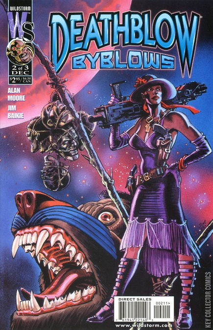 The mystery surrounding the new, female Deathblow deepens in the surprising miniseries from writer Alan Moore (TOM STRONG, PROMETHEA) and artist Jim Baikie (TOMORROW STORIES)! The new Deathblow is baffled by the strange things that are happening to her, and the advice of yet another Deathblow -- John Joe Cray -- is of no help at all. But even the dangers the two Deathblows face this issue pale in comparison to the deadly Judgment Cray, who has just taken notice of our confused heroine.
