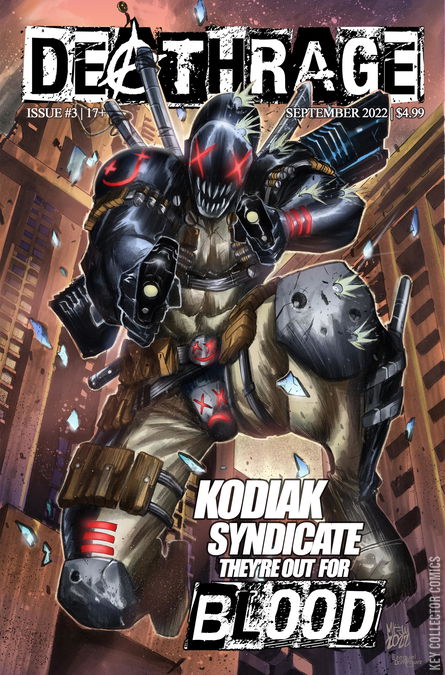Deathrage and Fire Kiss are on the run as hordes of The Syndicate's assassins are on the hunt for the prize that is Deathrage's high-tech helmet! Meanwhile, the reports of Las Vegas crime lord Teddy's death may have been GREATLY exaggerated...