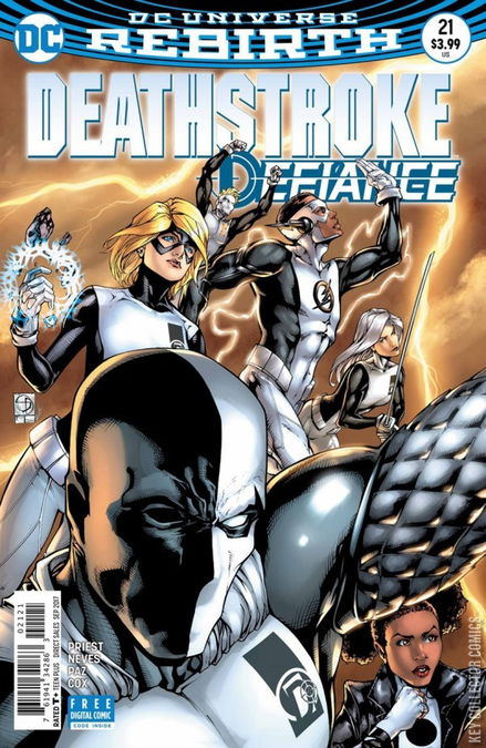 DEFIANCE, CHAPTER ONE: THE DARK TITANS A new day has dawned for Deathstroke. Having emerged from the Speed Force a changed man, Slade Wilson takes aim at living a better life—a life in service of justice. But when the world refuses to accept the new Deathstroke, Slade recruits a group of young heroes to join him including including former Teen Titans, Kid Flash and Power Girl, his children, Rose and Jericho, and the bombastic Terra! But has Slade truly shed his villainous past? And what other shadowy forces are working against him?