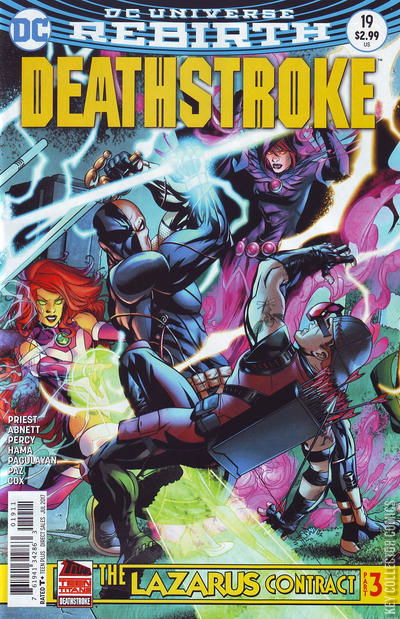 THE LAZARUS CONTRACT, PART 3 Will Slade succeed in reuniting with his son even at the risk of cataclysmic disaster? Or will the Titans and the Teen Titans be fast enough to stop him from changing the world as we know it? Find out what happens when the World’s Deadliest Assassin becomes the Fastest Man Alive! CONTINUED FROM TEEN TITANS #8 / CONTINUED IN TEEN TITANS: THE LAZARUS CONTRACT SPECIAL #1