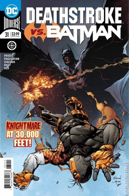 DEATHSTROKE VERSUS BATMAN, PART 2 OF 6: THE FALLING STARS The war between Deathstroke and Batman escalates when the Dark Knight foils one of Deathstroke’s assassination attempts! Meanwhile, a mysterious package brings Commissioner Gordon to Bruce Wayne’s doorstep, and Adeline Kane, Slade Wilson’s ex, sets her sights on Batman!
