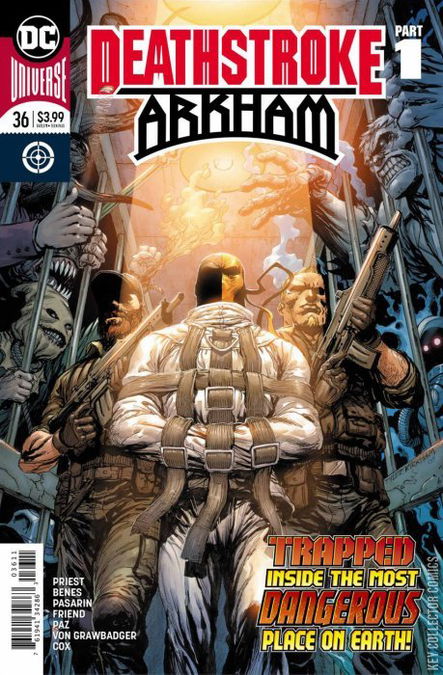 ARKHAM: BOOK ONE, THE REPUBLIC After being declared criminally insane, Deathstroke is committed to the infamous Arkham Asylum! It isn't long before the hunter becomes the hunted as Slade, powerless and weaponless, is targeted by some of Gotham City's most wanted. But after initially mocking and contravening the system meant to help him, Deathstroke learns that his only hope for survival may be to confront his own inner demons.