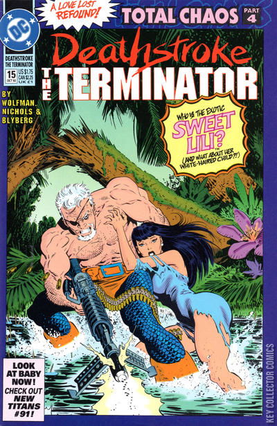 TOTAL CHAOS, PART 4 - ESCAPE FROM NEW YORK! Continued from Team Titans #1 Slade is dying and the means of saving his life may lie in the Terminator's past. Plus, who is Sweet Lili, not to mention her white-haired daughter? Continues in The New Titans #91