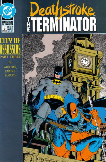 City of Assassins: Part 3 of 4. "The Allies!" Guest-starring Batman. The man known as the Terminator continues his quest to protect a man from the crime bosses of Gotham City. Working against each other didn't work. Perhaps Deathstroke and Batman will have more success as partners. Don't miss the team-up you never thought you'd see.