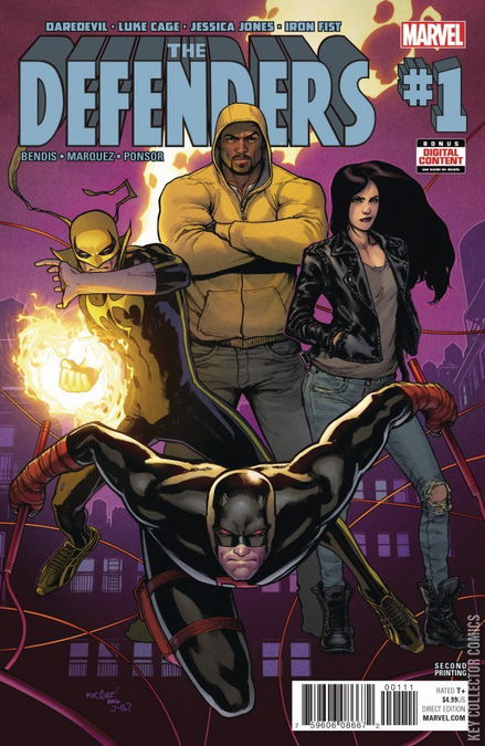 Daredevil! Luke Cage! Jessica Jones! Iron Fist! Individually, these four heroes have been on the front lines of the battle to keep the streets of the city safe and secure! But now, with a deadly enemy from the dim past making a major move to unite the underworld, they will need to become more — they will need to become DEFENDERS! Brian Michael Bendis and David Marquez unite to bring you the next great super-team, in the tradition of NEW AVENGERS!