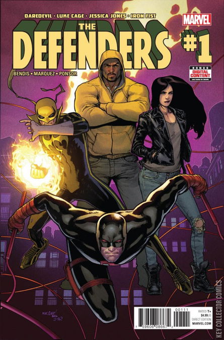 Daredevil! Luke Cage! Jessica Jones! Iron Fist! Individually, these four heroes have been on the front lines of the battle to keep the streets of the city safe and secure! But now, with a deadly enemy from the dim past making a major move to unite the underworld, they will need to become more — they will need to become DEFENDERS! Brian Michael Bendis and David Marquez unite to bring you the next great super-team, in the tradition of NEW AVENGERS!