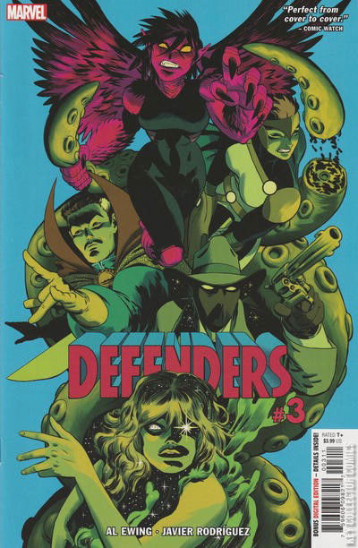 FIFTH COSMOS: THE HIGH PRIESTESS THE DEBUT OF THE DEADLY MORIDUN! Doctor Strange and his misfit crew land in a world of dark, primal magic—where our world’s master of the mystic arts is just a magical morsel for countless hungry sorcerers. The most powerful entity on this plane, the maker of magic itself, already knows the Defenders and their mission. Their paltry abilities mean nothing to him, save one: The power to move between cosmos. All of existence lies vulnerable as the Defenders find themselves outmatched!