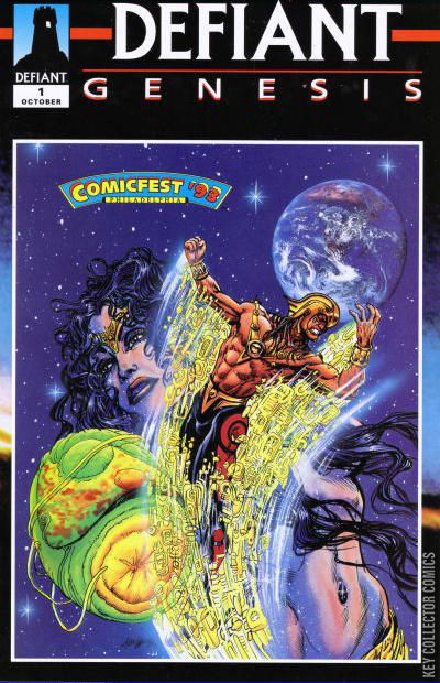 Similar to Birth of the Defiant Universe, an introduction to the Defiant universe as a whole with two-pagers setting up Warriors of Plasm, War Dancer, Dark Dominion, The Good Guys, and Charlemagne. Originally given away at Philadelphia Comicfest in a Defiant-branded thick polypropylene sleeve (similar to Wizard #1/2 issues) with and without a Dark Dominion bound-in card. It is believed the "standard" version was distributed via Home Shopping Network.