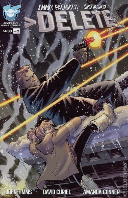 From the Harley Quinn team of Jimmy Palmiotti and Justin Grey! The second chapter of the mind-bending thriller Delete pits a simpleton handyman and an orphaned girl against an army of mercenaries and killers for hire, but the secrets and lies begin to stack up in unexpected ways revealing that the prey might actually be the predators. hat exactly is hidden in Kalina’s mind and is Spencer the person he believes he is? Nothing is as it seems in this action-packed science fiction adventure series guaranteed to thrill and amaze!