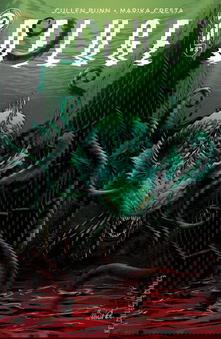 The death count is rising with the water, making escape seem less and less likely. Prisoners and guards alike are trapped within Sieverville Correctional Prison for Women, and it’s becoming increasingly obvious that the rain is not the only thing coming in from outside. No one is safe from the creatures lurking in the flood, and it’s soon to be every woman for herself. Mama Bear, in particular, isn’t waiting to be rescued. She’s going to take matters into her own hands and does not care who gets in her way.Meanwhile, Shandra has a theory as to what the monsters are and what they want, but Maggie isn’t sure what to believe as the ghosts of her guilt become more insistent.Continuing the terrifying series from horror maestro Cullen Bunn (The Sixth Gun; Deadpool Destroys the Marvel Universe) and the art team of Marika Cresta (Star Wars: High Republic) and Ronda Pattison (TMNT). Featuring an eerie main cover by Riley Rossmo) (The Moon is Following Us) and B variant by Cresta and Pattison.