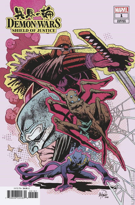 IRON SAMURAI VS. SHIELD OF JUSTICE! Mariko Yashida is torn between two worlds: the human world and the yokai dimension–a strange world filled with stranger creatures. The denizens of the yokai dimension need Mariko’s help to stop a war that’s brewing between two factions, one led by the Iron Samurai and his spider-like ally, and the other by a shield-wielding warrior and his panther-like right hand. The clash between them could have cataclysmic consequences for both worlds! Dive deeper into the magic, mystery, and mayhem of DEMON WARS by Peach Momoko !