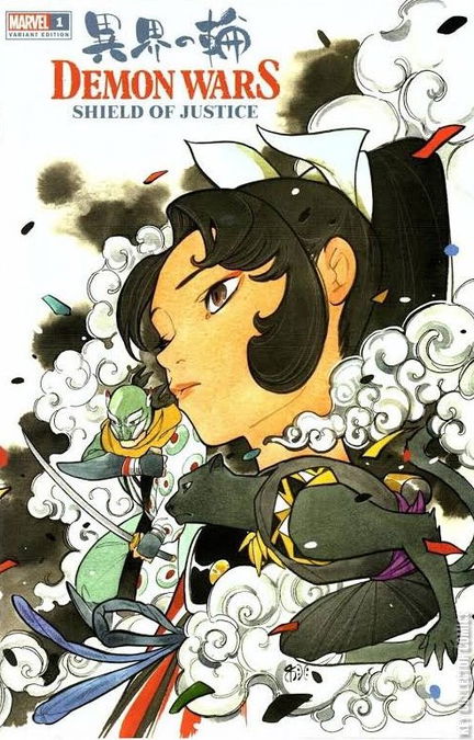 IRON SAMURAI VS. SHIELD OF JUSTICE! Mariko Yashida is torn between two worlds: the human world and the yokai dimension–a strange world filled with stranger creatures. The denizens of the yokai dimension need Mariko’s help to stop a war that’s brewing between two factions, one led by the Iron Samurai and his spider-like ally, and the other by a shield-wielding warrior and his panther-like right hand. The clash between them could have cataclysmic consequences for both worlds! Dive deeper into the magic, mystery, and mayhem of DEMON WARS by Peach Momoko !