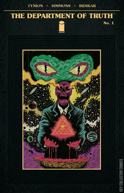 CHAPTER ONE: THE END OF THE WORLD Cole Turner has studied conspiracy theories all his life, but he isn't prepared for what happens when he discovers that all of them are true, from the JFK assassination to flat Earth theory and reptilian shapeshifters. One organization has been covering them up for generations. What is the deep, dark secret behind the Department of Truth? Bestselling writer JAMES TYNION IV ( Batman , Something is Killing the Children ) debuts his first Image ONGOING SERIES alongside breakout artist MARTIN SIMMONDS ( Dying is Easy )!