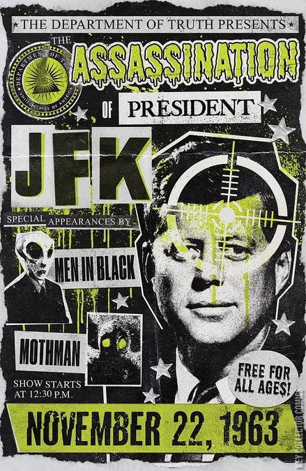 Since the very first page of THE DEPARTMENT OF TRUTH, questions have swirled around Lee Harvey Oswald, the director of the DoT—his motivations, his allegiances, and his true identity. Now, in our landmark 25th issue, prepare for answers that will change everything. Starting with…what really happened in Dallas?JAMES TYNION IV (W0RLDTR33, Nice House on the Lake) and **MARTIN SIMMONDS **(UNIVERSAL MONSTERS: DRACULA) set their sights on a 25th-issue blowout for the multiple Eisner Award-nominated series!