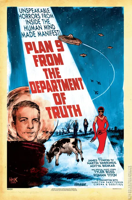 DEVIATION TWO: FOIL It's another deep dive into the Secret Archives as guest artist TYLER BOSS ( 4 Kids Walk Into a Bank ) joins James Tynion IV ( Batman ) and THE DEPARTMENT OF TRUTH to investigate sightings of flying saucers...and the strange men in black suits trying to cover up their existence. Hold onto your cows-the truth is out there!