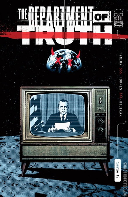 The third arc of Eisner-nominated THE DEPARTMENT OF TRUTH concludes here, as breakout star JORGE FORNES ( Rorschach ) joins the team to reveal the long-awaited secrets behind one of the biggest conspiracy theories of all time. Strap in, folks: Richard Nixon has a moon landing to fake.