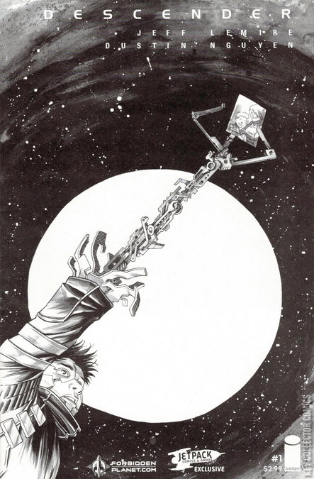 One young robot's struggle to stay alive in a universe where all androids have been outlawed and bounty hunters lurk on every planet. A rip-roaring and heart-felt cosmic odyssey that pits humanity against machine, and world against world, to create a sprawling space opera from the creators of Trillium, Sweet Tooth, and Little Gotham. Extra-sized first issue. 30 story pages for only $2.99!