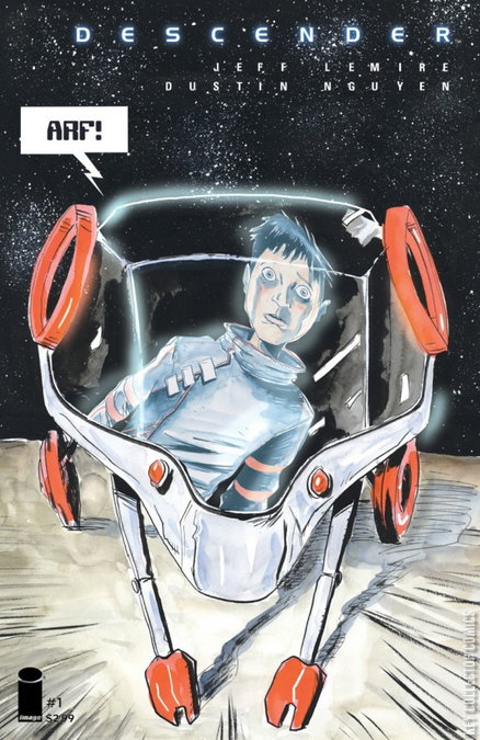 One young robot's struggle to stay alive in a universe where all androids have been outlawed and bounty hunters lurk on every planet. A rip-roaring and heart-felt cosmic odyssey that pits humanity against machine, and world against world, to create a sprawling space opera from the creators of Trillium, Sweet Tooth, and Little Gotham. Extra-sized first issue. 30 story pages for only $2.99!