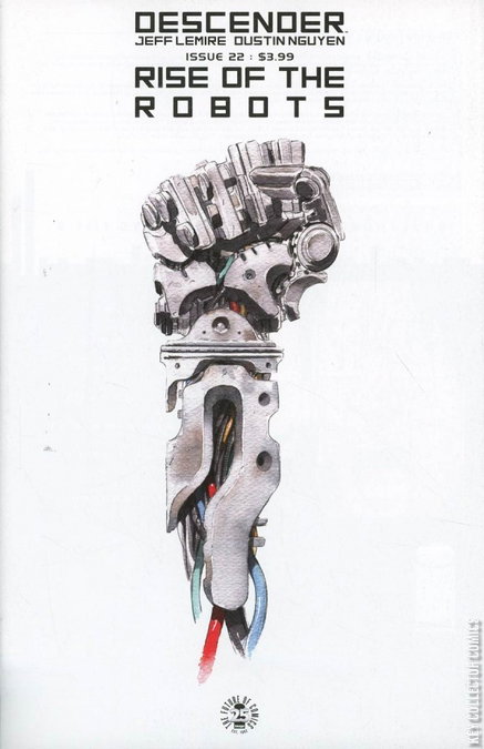 "RISE OF THE ROBOTS," Part One THE FIRST DESCENDER EVENT STARTS HERE! Tim-22 makes his move on Telsa and Quon, Andy and Effie attack the Machine Moon, and Psius and The Hardwire have Tim-21 in their grips. As the various factions hunting Tim-21 close in, the galaxy is on the verge of all-out war. This is it! Everything DESCENDER has been building to begins to erupt in the most important and surprising DESCENDER storyline yet! This five-part DESCENDER event will include a series of interlocking variant covers by LEMIRE and NGUYEN!