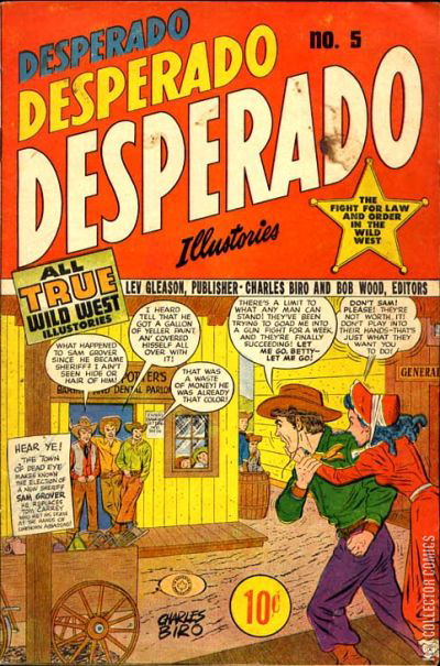 Home / Superior / Desperado / Desperado #5 Superior Released January 1948 Desperado #5 Add to Collection Want It Synopsis No synopsis available. Add to Collection Buy it on eBay Buy on eBay Low $35 Mid $105 High $350 Synopsis No synopsis available. Details Series Desperado Cover Date January 1948 Pages N/A UPC N/A Cover Price N/A Final Order Cutoff N/A Creators No creators listed. Price Guide Log in or subscribe to access detailed graded price information and market insights. Log In Subscribe