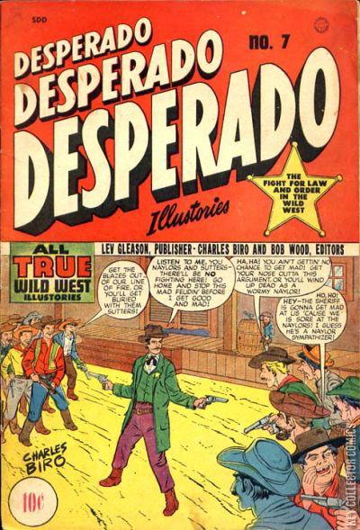 Home / Superior / Desperado / Desperado #7 Superior Released February 1949 Desperado #7 Add to Collection Want It Synopsis No synopsis available. Add to Collection Buy it on eBay Buy on eBay Low $35 Mid $105 High $350 Synopsis No synopsis available. Details Series Desperado Cover Date February 1949 Pages N/A UPC N/A Cover Price N/A Final Order Cutoff N/A Creators Cover Artist Charles Biro Price Guide Log in or subscribe to access detailed graded price information and market insights. Log In Subscribe