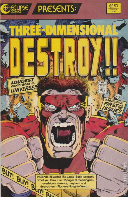Eclipse 3-D special #17. From the mind of Scott McCloud, renowned author of "Understanding Comics" and "Reinventing Comics" as well as the "Zot!" comic series, comes "32-pages of meaningless, overblown violence, mayhem and destruction," along with "one Naughty Word." And it's in 3-D! Whoo-hoo!