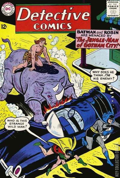 THE JUNGLE MAN OF GOTHAM CITY A gangster tricks a jungle man into thinking that Batman is his enemy, and brings him to Gotham to use his skills and the animals he commands against the Caped Crusader. With help from Commissioner Gordon, Batman and Robin discover that a married couple from Gotham City lost their kid in the jungle fifteen years ago and that the jungle man could easily be that kid. With a mold of the Jungle Man's footprint conveniently left at the scene of a crime, Batman confirms the truth and he uses some of the jungle's man childhood memories in order to stop his attacks. The jungle man recognizes Batman as a friend and he turns against the crooks who used him, sending them to prison. Afterwards, the jungle man returns to his parents' home and he tries to fit back into society. THE MAN OF 1,000 DISGUISES After J'onn J'onzz and Zook fail to capture a "human fly" bandit, John Jones's attention is drawn by Diane Meade to Porto, a "man of 1,000 disguises" who is performing, among other things, a human fly as part of his repertoire. Jones and Diane take Zook to the performance, and Zook's antennae indicate that Porto and the bandit are the same man. J'onn J'onzz captures Porto, and, when the latter refuses to reveal where the rest of his gang is, assumes Porto's identity with chameleon power and hides the disguise artist away. J'onzz whips through Porto's act onstage, using his chameleon powers to effect the disguises. But Porto himself escapes, contacts his gang, and takes them to the theater where J'onzz is performing, intending to kill him when he assumes a vulnerable human aspect. Zook rescues the Manhunter by melting the gang's bullets before they can hit him, and J'onzz captures Porto and his gang.