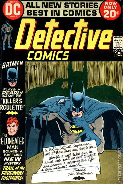 KILLER'S ROULETTE! Batman sets out to uncover the secret behind the suicides of three wealthy compulsive gamblers and finds that they had all been tricked into playing russian roulette. Bruce Wayne poses as a gambler on a gambling ship and he comes across the man responsible for the crimes. He allows the crook to lure him into his private russian roulette game, but once they find themselves alone, Bruce switches into Batman and the game starts. Each of them take turns to spin the gun's barrel and taking chances with the gun. Finally, Batman has survived all his five turns and it is up for the crook to pull the trigger with the barrel full. The goon tries to shoot at Batman, but the Dark Knight has jammed the weapon using the same trick the crook has used to win all his previous gambles. Finally, Batman captures the killer and ends the killer's roulette. TRAIL OF THE FADEAWAY FOOTPRINTS!