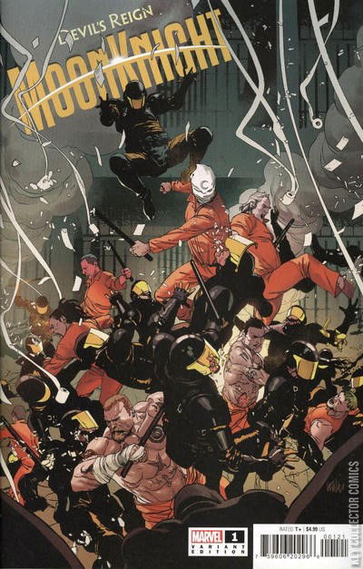 After being arrested by the Thunderbolts as part of WILSON FISK’S crackdown on costumed heroes, MOON KNIGHT is now a prisoner in the high-tech Myrmidon, surrounded by hostile guards and many of the very criminals he helped put away, Marc Spector must fight for his survival. But Moon Knight’s quest for justice doesn’t end just because of a little light incarceration… DEVIL'S REIGN TIE-IN