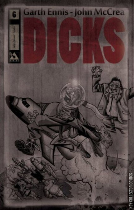 Garth Ennis and John McCrea have insulted just about everyone there is in the pages of Dicks. Or have they…? Dougie and Ivor are now going where no idiot has gone before. Space. Available with a Regular cover, a very Offensive cover, and a special Classic B&W cover showing one of the lost Dicks covers of yesteryear - all by series artist John McCrea!