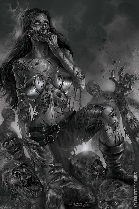 Vampirella arrives on Mars but it may be too late for her and Dejah Thoris to save Barsoom...Things go from bad to worse as Earth Project: Zombiepowers spreads the killer virus throughout the globe...and Red Sonja and her mysterious companion may have the key to solving the plague, but first they've got to past an army of zombie gorillas. Did we say zombie gorillas? Yes, we said zombie gorillas.