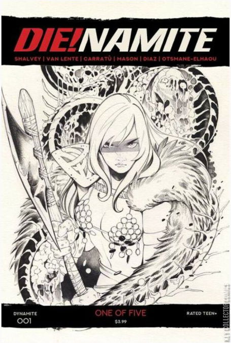 In the shadowed alleys of 1930s Chicago, GREEN HORNET and KATO hunt the nefarious criminal element plaguing their city. They soon discover a mysterious danger that threatens Earth itself! Meanwhile, VAMPIRELLA hurtles through space on a Drakulon ship, desperate to uncover a dark mystery... DIE!NAMITE is an event series that unites all of the hit Dynamite characters as you've never seen them before! They will come together to battle the biggest threat they have ever faced. Many...are even missing faces! Written by Declan Shalvey (Deadpool vs Old Man Logan, Bog Bodies) with art by newcomer sensation Justin Mason (Vengeance of Vampirella) and colors by Chris O'Halloran (Immortal Hulk).