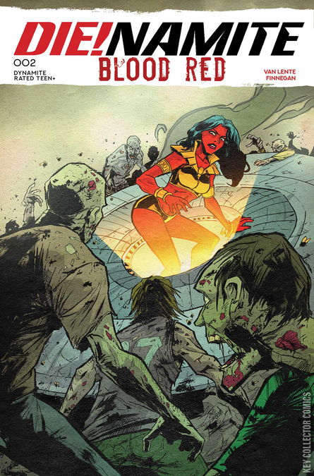 SAVIORS FROM MARS? Welcome back to Sunset City — where the boys crave brains and the girls are pretty! Having blown off a meeting with world-weary private investigator Vampirella, the fortified city’s iron-fisted ruler Purgatori now summons the Daughter of Drakulon to translate for a visitor who’s just crashed her saucer on the outskirts of town. Vampi doesn’t speak Martian, but the telepathic Dejah Thoris is quick to pick up the local tongue — and the news she brings is a bombshell. If Dejah’s story checks out, the cure to the all-male zombie plague is within Puragori’s grasp — she just needs to motivate Vampirella to hand it over after she finds it! The unquiet spirits of FRED VAN LENTE and MARCO FINNEGAN haunt the living reader through the unwholesomely compelling pages of Die!namite: Blood Red #2 — featuring shamblingly chic covers from EJ SU, ROBERTO MELI, DAVID COUSENS, and WILL ROBSON!